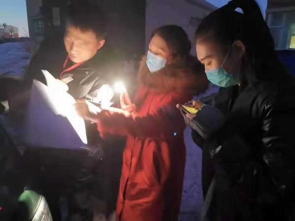 圖為伊通郵政黨員先鋒隊凌晨開展入戶調(diào)查