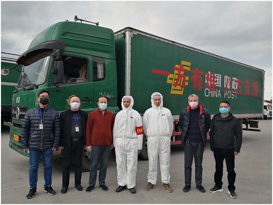 1月28日,福州郵區中心局緊急開通綠色通道,為全省各地市的防疫捐贈物資提供免費的寄遞服務。當日下午15:00,作為福建郵政首部運送防控物資的省際干線車輛從福州郵區中心局旗山郵件處理中心出發,高聲勇和陳忠帥兩位駕駛員主動請纓,踏上了千里馳援武漢的征程。