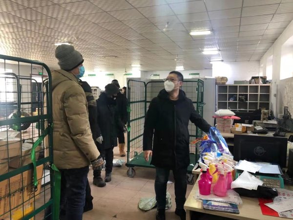 在得知疫情消息后,大年初三由總經(jīng)理組建疫情防控領(lǐng)導(dǎo)小組,建立微信群,明確各部門分工,有序安排疫情防控和生產(chǎn)經(jīng)營工作。班子成員提前返崗,對營投、車隊、營業(yè)網(wǎng)點進行走訪,發(fā)放防疫物品,并對相關(guān)生產(chǎn)場地、車輛和用品進行消毒。郵政工會配合市場部在齊市、訥河等地采購口罩、消毒液、酒精、手套、額溫槍、體溫計等防疫物品并結(jié)合市公司下發(fā)防疫物品,最大限度保障一線職工防護物品使用用量。工會人員還參與到一線生產(chǎn)工作中,嚴控各生產(chǎn)環(huán)節(jié)操作風(fēng)險,全力保證一線人員防疫物品供應(yīng)和生產(chǎn)安全保障。