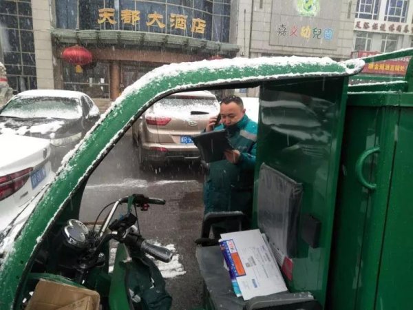 2月14日,面對惡劣天氣,廊坊市分公司及時啟動應急預案,確保郵路安全暢通。投遞員冒雪走千家進萬戶,及時將每一件郵件送到用戶手中。