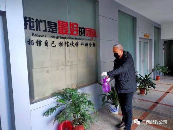 為確保大家有個安心、舒適的工作環境,段文輝不僅找來專業消毒人員對縣公司辦公大樓、生產一線、投遞分揀轉運等場所進行大消毒,還帶領辦公室員工在郵政大樓院內每個角落檢查,以免遺漏衛生死角。細心的他還早早在電梯門口準備好紙巾盒和溫馨提示標語,提醒大家使用紙巾按電梯按鈕。