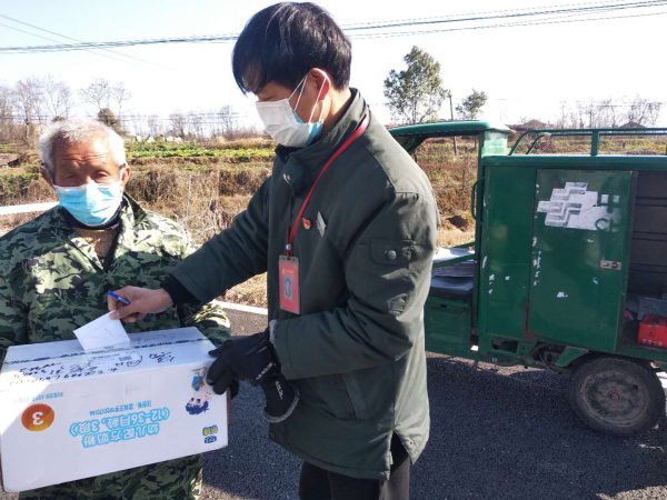 為了做好疫情防控,許師傅除了按時投遞郵件,還參加到在鄉里的疫情檢查站做志愿服務,對街道路口來往的車輛和人員進行登記,檢查測量體溫,和其他志愿者一起到鄉里粘貼疫情防控通告,義務宣傳疫情的傳播風險和個人防護。