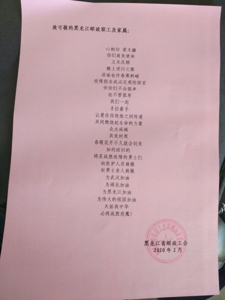 | 作者:冷妍 | 來(lái)源:黑龍江省郵政工會(huì) | 時(shí)間:2020-02-21 |