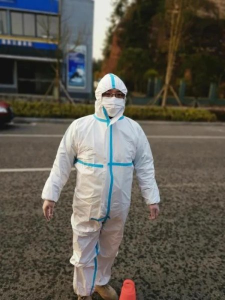 20日那天天氣不錯,太陽還挺大。我戴好口罩、手套,穿好防護服,只露兩只眼睛在外面,一會兒就出了一身汗。