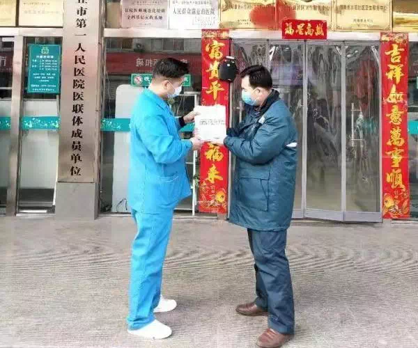 2月4日早上6點(diǎn),周口市投遞員許金科看到市第五人民醫(yī)院急需的呼吸機(jī)到了,第一時(shí)間撥通了該院丁醫(yī)生的電話。