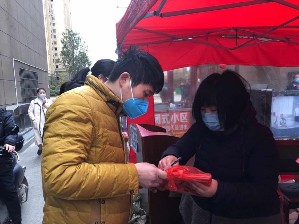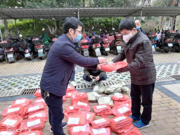 “喂,您好,請問您是xxx嗎?我是中國郵政,為您派送的教材到了。因現(xiàn)在屬于非常時期,請您到小區(qū)門口來領(lǐng)取,謝謝。” 2月19日上午,撫州市公司黨委書記、總經(jīng)理、寄遞事業(yè)部總經(jīng)理張華總經(jīng)理帶隊來到薈萃中央小區(qū)幫扶投遞教材。剛到小區(qū)門口,他就迅速拿起手機聯(lián)系客戶。