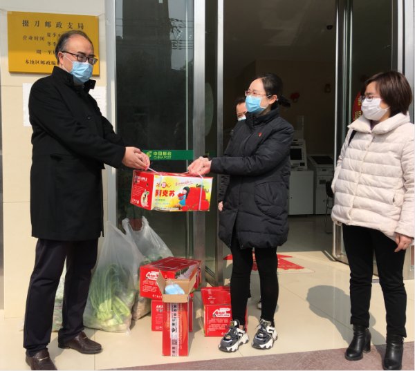 “這兩天身體有沒有感到不舒服?”荊門市郵政分公司潘彭恩總經理與中心投遞站投遞員李愛秀親切交談,詳細詢問了她的身體、生活及家庭情況,親手為她們送去了新鮮蔬菜、水果、防疫口罩和消毒液,對她們抗疫期間始終奮戰在一線表示充分肯定,并鼓勵她們要繼續堅定“攻必克、戰必勝”的信念,立足本職工作,落實各項防疫措施,在努力做好疫情防控工作的同時,保暢通、保民生、保運轉,助力全社會復工復產,為打贏抗疫阻擊戰貢獻巾幗力量。