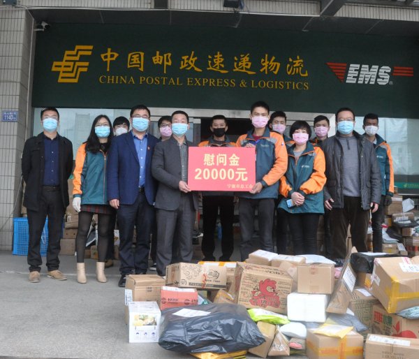 3月17日,寧德市總工會副主席吳財(cái)明、市總工會宣教網(wǎng)絡(luò)部副部長楊智超等一行來到寧德市分公司寄遞事業(yè)部東僑攬投部,親切看望奮戰(zhàn)在抗疫一線的郵政員工,為“快遞小哥”送來2萬元慰問金和工會組織的關(guān)愛。