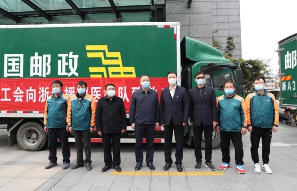 3月16日下午,浙江省總工會和中國郵政集團有限公司浙江省分公司攜手在浙江郵政大樓舉辦浙江省總工會慰問浙江援鄂醫療隊物資專車發車暨“一線戰疫 最美逆行”主題郵折揭牌儀式。浙江省人大常委會副主任、省總工會主席史濟錫,浙江省總工會黨組成員、副主席張兆都,中國郵政集團有限公司浙江省分公司黨委書記、總經理陳清,中國郵政集團有限公司浙江省分公司副總經理、工會主席楊嘉樹等出席儀式。