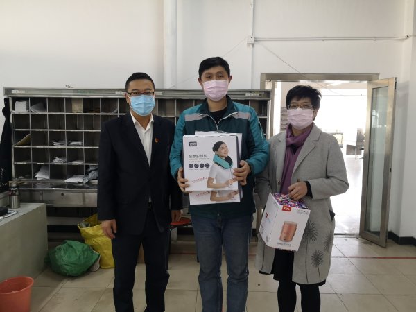 慰問的同時,于主席了解投遞職工小家生活用品用具使用情況、投遞員喝熱水、吃熱飯、洗熱水澡情況、職工小家衛消毒的清潔情況等。并叮囑他們在做好本職工作的同時,要時刻保持疫情防范意識,確保郵件和自身安全。