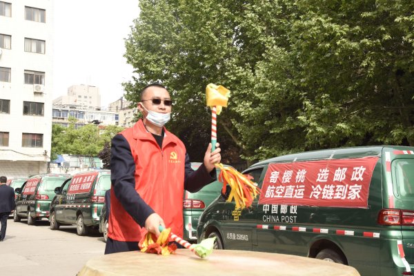誓師大會在運(yùn)營中心櫻桃攬收戰(zhàn)士們的擂鼓聲中拉開帷幕,運(yùn)營中心機(jī)關(guān)管理人員、區(qū)域經(jīng)理、攬投部經(jīng)理組成氣勢雄宏的黨員助農(nóng)先鋒隊,鳴鼓揮旗,為今年的櫻桃寄遞攬收鼓勁助勢。