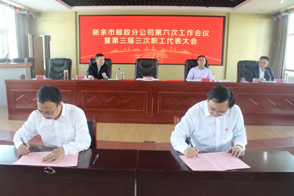 會上,市分公司與市郵政工會簽訂了2020年為員工辦實事承諾書、工資集體協商專項協議。(江西省郵政工會)