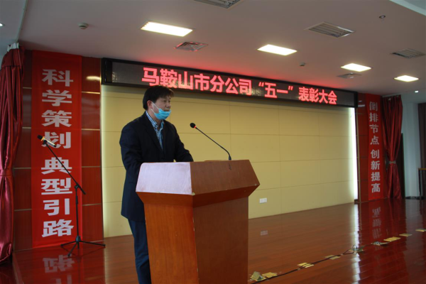 2020年4月29日下午,陽光明媚,馬鞍山市郵政分公司在“五一”國際勞動節前夕,召開“五一”表彰大會。表彰市公司各條戰線涌現出來的先進集體和先進個人,特別是在新冠肺炎疫情期間,廣大員工齊心協力、眾志成城,始終堅守在工作一線。表彰大會分為三個會場,以電視電話和互聯網形式實時同步進行,會議由楊文副總經理主持。