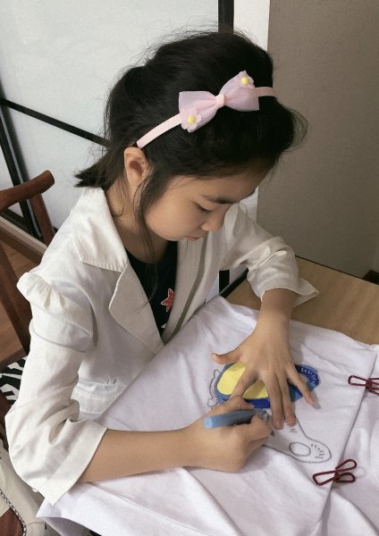 參加活動的來自一線崗位的21個員工家庭,子女年齡在5至14歲之間?;顒觾热萆婕皠撟?、彩繪、手工藝制作等。普陀區分公司工會前期籌備,細心梳理了員工和子女信息??紤]了多種設計題材及豐富素材,以滿足不同年齡孩子的喜好,提供個性化制作手工材料包進行拓展創意。由于防控疫情仍需要做到安全防護,活動安排采取5月28日線下主圖繪制。5月31日參賽員工在家中引導自己的子女,進行創意T恤的手工裝飾品制作環節。6月1日線上視頻互動等形式分別完成。