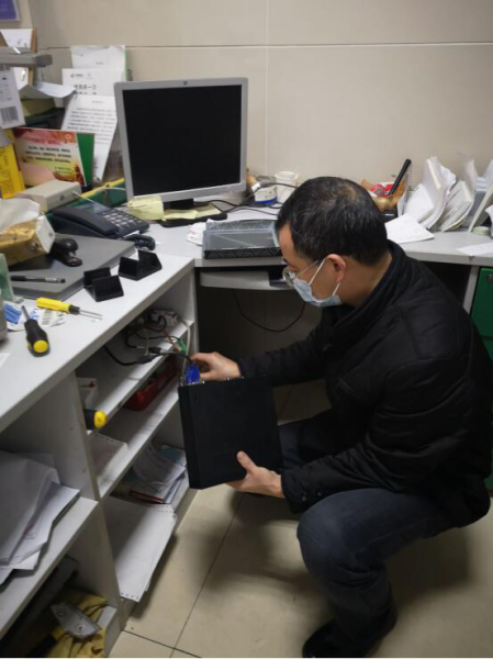 2020年2月18日下午5時,接到網(wǎng)點(diǎn)電話,安慶市分公司信息中心班長楊洪立刻驅(qū)車前往維修。這是他今天接到的第5個電話,忙活了一天了,飯都沒顧得上吃。 疫情爆發(fā)以來,整個城市仿佛都放慢了節(jié)奏,而信息中心反而比平時更加忙碌。“從春節(jié)值班開始幾乎每天都有維護(hù)任務(wù),疫情期間維修都必須帶口罩,呆在狹小的空間長時間維修,真是悶的闖不過氣來。”零度左右的氣溫,楊洪卻忙得額頭上冒出了汗珠。 疫情還未結(jié)束,工作仍得開展。手機(jī)視頻會議需要信息中心在領(lǐng)導(dǎo)手機(jī)上或電腦上下載軟件,逐步調(diào)試,確保會議正常進(jìn)行。