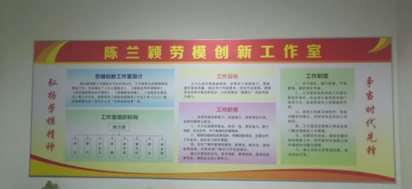 陳蘭穎創新工作室成立于2009年4月,十年來,創新團隊秉承“抓創新就是抓發展 謀創新就是謀未來”的理念,緊緊圍繞“服務、生產、經營”這個中心,開展技術革新、服務創新、難題會診、項目創新等活動。先后推出了《五心服務法》《郵政實用手語教材》《三心二意四提高服務法》《勞模大講堂進社區》等15項創新成果。創新成果的推廣實施不斷提升了郵政服務品牌,以榜樣的力量凝聚了中國郵政改革發展的強大正能量。