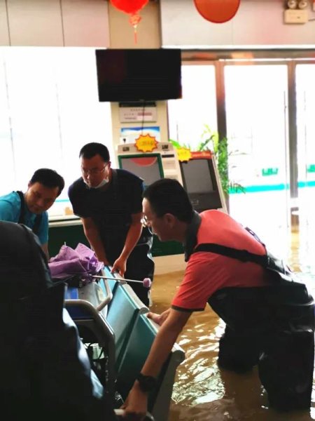 李重要緊急從大河支局趕往民營街街道時,已經是一片汪洋。他們冒著齊腰深的湍急洪水,跋涉近2公里趕到民營街支局,和黨員干部、支局員工在極短時間內用拖板車、門板和雜木扎拼成幾個小木筏,推入水中,游水推筏,一趟一趟地緊急搶救浸泡在水里的自助設備、電器。