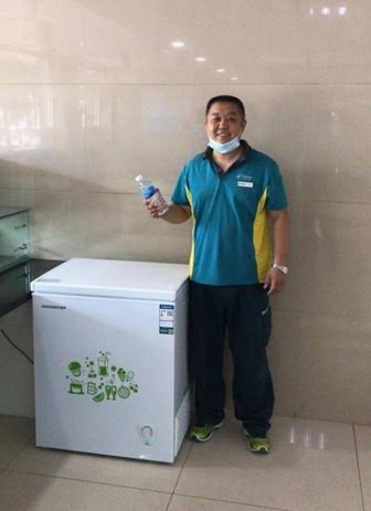 “員工自助清涼吧”設置在餐廳一角,并配備有冰鎮飲料、咖啡、VC水、酸奶、礦泉水等多種消暑飲品,員工按照陳列的商品價目表,自助掃收單碼進行支付取貨,在方便員工的同時,也發展了收單業務。在解決市內一線員工解暑問題的同時,也為涼水、長安、石峴三個農村支局投遞員配備了小冰柜,免費提供礦泉水,扎實做好一線防暑降溫工作,為員工創造涼爽的作業環境。