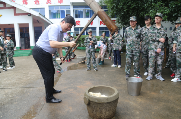隨后,開始了打麻糍果活動,李軍、金雪發與學員紛紛動手參與,用木杵反復地敲打、攪拌糯米,不一會兒,熱騰騰的麻糍果新鮮“出爐”了。大家一邊吃著“勞動果實”,一邊談笑風生,享受著歡樂的時光。