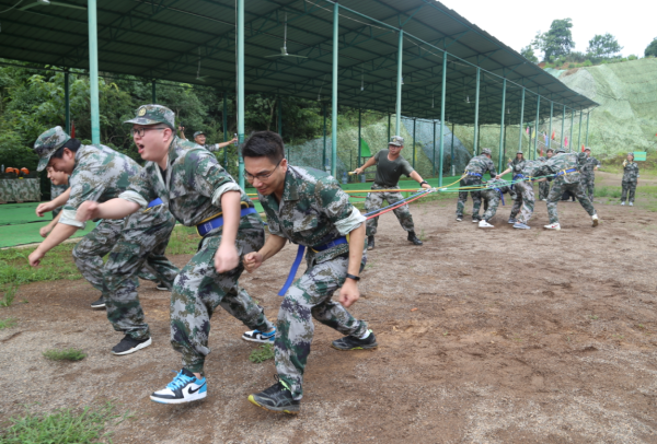 在精彩有趣的打麻糍果活動結束后,拓展培訓活動正式開始。《十米高空攀巖》、《八方拉力》、《跳動的心》、《射擊》、《真人CS》、《沙場點兵》等游戲輪番上陣,學員們積極參與,樂在其中,團結一致、凝心聚力,在活動中釋放了壓力、彰顯了活力。