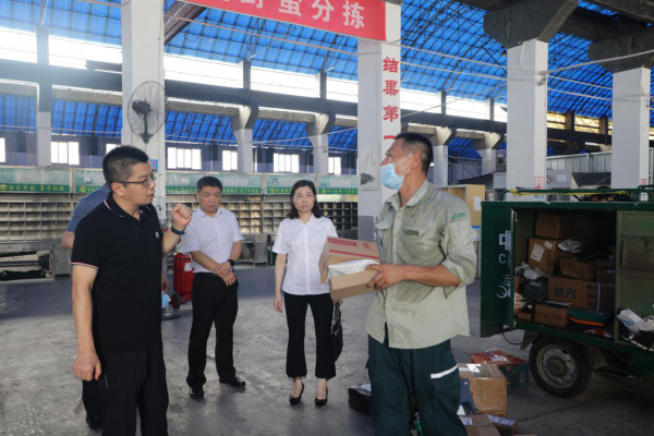 來到襄州區分公司郵件處理中心,趙總向奮戰在一線的員工送上了祝福,詳細了解了郵件處理的作業流程,與投遞員親切交談,叮囑他們天氣炎熱,工作的同時要做好防暑降溫和做好自身防護。