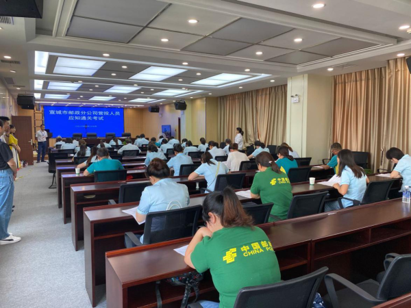 2020年7月26日,宣城市分公司組織全市營(yíng)投人員在全市七個(gè)考區(qū)同時(shí)舉行普服應(yīng)知應(yīng)會(huì)通關(guān)考試。市郵政管理局領(lǐng)導(dǎo)和市分公司分管副總在主考區(qū)巡考,并通過(guò)會(huì)議視頻系統(tǒng)對(duì)六個(gè)分考區(qū)進(jìn)行巡考。市郵管局行管科負(fù)責(zé)人、市公司服務(wù)質(zhì)量部負(fù)責(zé)人赴涇縣分考區(qū)進(jìn)行了現(xiàn)場(chǎng)巡考。