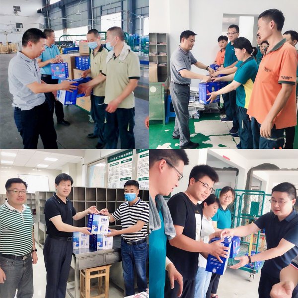 近日,馬鞍山天氣持續高溫,為保障員工身心健康和生產安全運行, 8月6日—8月11日市分公司領導兵分四路冒著酷暑先后來到開發區郵件處理中心和市區四大攬投部為奮戰在工作一線的投遞員和日夜奮戰在轉運員工送去清涼。公司領導所到之處詳細詢問他們出班時間和路線,對他們高溫酷暑期間依然堅守崗位的敬業精神表示慰問和感謝,叮囑他們在高溫投遞過程中注意安全,做好自身防護措施,謹防中暑,平安度夏。公司領導將一箱箱飲品發放到他們的手中,為他們送去了一份夏日的清涼。
