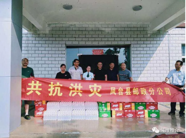 汛情嚴峻,齊力同心,汛情期間,鳳臺縣郵政分公司負責人、工會主席承載著淮南郵政廣大干部職工的關懷囑托,共同前往毛集實驗區淮北大堤焦崗湖防汛救災指揮部,看望慰問防汛一線人員,向他們捐贈30件礦泉水、20件方便面、50件綠茶等防汛救災物資,真誠表示,郵政企業會一如既往主動承擔社會責任,全力配合政府做好防汛抗災工作,與人民同心同力、同擔風雨,共同度過此次難關。以實際行動助力毛集實驗區奪取防汛抗洪、搶險救災的全面勝利。