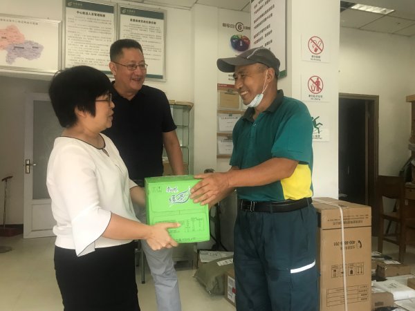 才戰洪澇又逢酷暑。連日來,熱浪滾滾,酷熱難擋,為做好高溫季節防暑降溫工作,切實保障一線員工的身體健康。8月4日-6日,合肥市郵政工會立即行動,市分公司領導分五組到各營業網點、攬投站點、運營中心,對一線廣大員工進行高溫慰問,給他們送去綠豆、礦泉水、冰紅茶等清涼防暑降溫用品。