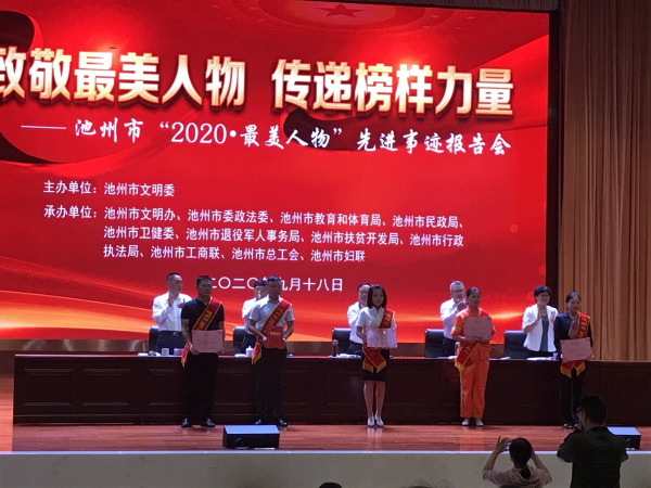 為認(rèn)真學(xué)習(xí)貫徹習(xí)近平新時(shí)代中國(guó)特色社會(huì)主義思想和黨的十九大精神,深入貫徹落實(shí)習(xí)近平總書(shū)記系列重要講話精神,東至縣郵政工會(huì)積極配合縣委宣傳部、縣婦聯(lián)、縣文明辦深入開(kāi)展2020年尋找“最美家庭”、創(chuàng)建“五好家庭”、“傳承好家風(fēng)·建設(shè)和美家庭”主題活動(dòng),縣分公司推薦方赟《最美妯娌》先進(jìn)事跡材料參與評(píng)選活動(dòng)。2020年9月18日上午,方赟同志參加了池州市文明委舉辦的池州市“2020 最美人物”先進(jìn)事跡報(bào)告會(huì),被評(píng)為池州市“2020 最美孝親”榮譽(yù)稱號(hào)。