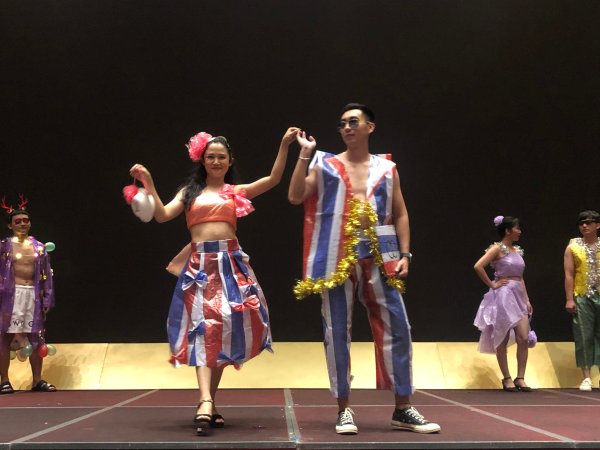 下午15:00,時裝創意秀正式拉開序幕,各參展團隊依次登臺展現他們別出心裁的服裝設計和精心編排的表演。“設計師”們大膽創意,員工模特自信大方展示,每一套服裝都充分展現出設計者獨特新穎的構思。現場精辟的解說詞,更是讓大家了解到設計者的材料、創作特色和創作意圖。展出過程中還穿插了舞蹈、歌曲、環保知識小競答等內容,現場氣氛熱烈。