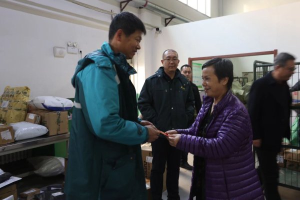 11月11日,遼寧省分公司副總經(jīng)理、工會(huì)主席蘇沙沙、副主席項(xiàng)連文一行,在撫順市分公司張揚(yáng)總經(jīng)理、李哲勇副總經(jīng)理的陪同下,先后來(lái)到撫順縣后安郵政支局、撫順縣石文郵政支局、順城攬投部、城東攬投部和市分揀轉(zhuǎn)運(yùn)中心,代表省公司和省會(huì)向旺季生產(chǎn)期間奮戰(zhàn)在一線的員工表示感謝和親切慰問,并向網(wǎng)點(diǎn)贈(zèng)送了慰問金和慰問品。