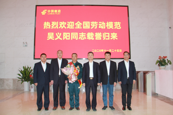 市分公司黨委書記、總經理宋武代表公司領導班子對吳義陽同志載譽歸來表示祝賀。宋總談到,吳義陽被授予全國勞模,不僅是他個人的榮譽,更是安慶郵政集體的榮譽。他希望吳義陽不忘初心,牢記使命,再接再厲,扎實工作,在崗位上取得更大成績的同時,做好“傳幫帶”,培養和帶出更多的先進模范典型。全國勞模不僅僅承載著企業的重托,更多地承載著社會責任,希望吳義陽要發揚勞模精神,做好勞模精神的宣講,結合愛心郵路建設,熱心社會公益事業,做勇擔社會責任的新時代勞動模范。
