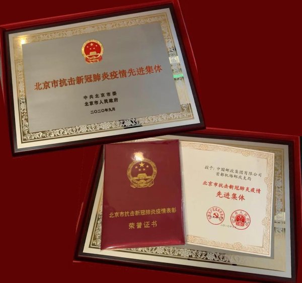 10月28日,正值中國郵政集團有限公司隆重召開抗擊新冠肺炎疫情表彰大會之際,朝陽區分公司首都機場郵政支局雙喜臨門,一是獲得了“中國郵政集團有限公司抗擊新冠肺炎疫情先進集體”榮譽稱號,一是將“北京市抗擊新冠肺炎疫情先進集體稱號”這塊金燦燦的獎牌捧了回來。(北京郵政工會)