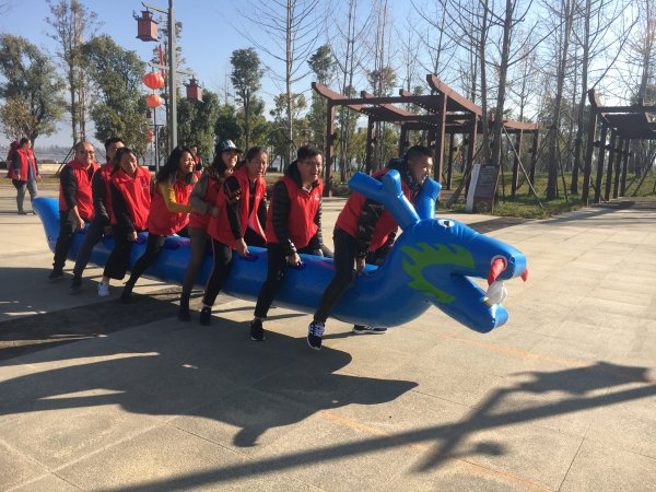 早上9:00,由主持人召集員工集合,集體做熱身運動,避免在比賽中受傷。9:30活動正式開始,首先是拔河比賽,3個團隊分別選出10名優(yōu)秀隊員參賽,以循環(huán)賽的方式進行比賽,決出冠亞軍。其次是旱地龍舟比賽,每場比賽2個團隊,每隊8人,隊員跨在旱龍背上向前跑步,在規(guī)定的路線內(nèi),到達目的地時間較短的2個團隊獲勝,每個團隊可參加3次,選最好成績進行評獎。最后是無敵風(fēng)火輪比賽,每隊10人,男女各5人,隊員全部站到履帶里面,腳踩履帶,在規(guī)定的跑道上行走30米,用時最少前2隊獲勝。活動現(xiàn)場,員工們通力協(xié)作,歡呼聲連成一片,賽出了“友誼第一,比賽第二”的精神。
