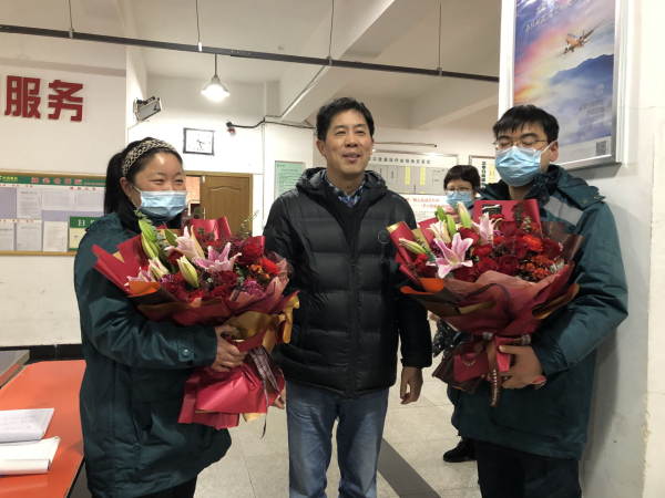 受市分公司黨委委派,分公司工會一行人等,于2021.1.6日下午,專程慰問了分公司寄遞部李維維、李曉鳳二位同志,并為他們送上了鮮花。