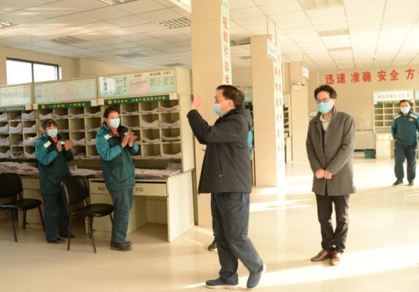 最后,吳建華一行來到了剛剛獲得“全國郵政行業先進集體”榮譽的曾都區普郵投遞部,他同投遞員親切地握手,向他們取得的榮譽表示祝賀,并為他們送上新春祝福。