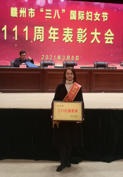 3月8日,在贛州市“三八”國際婦女節111周年表彰大會上,江西省瑞金市郵政分公司紅都大道郵政支局被贛州市婦聯授予“2020年度贛州市三八紅旗集體”稱號。