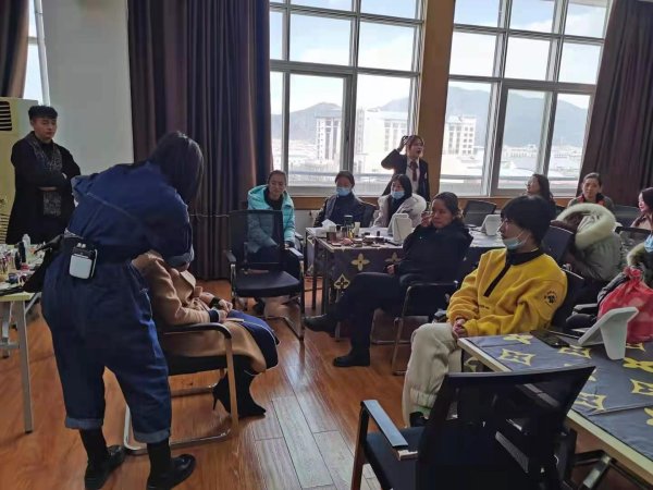 3月8日,迪慶分公司機關工會組織女同胞在公司六樓會議室舉辦化妝學習課。