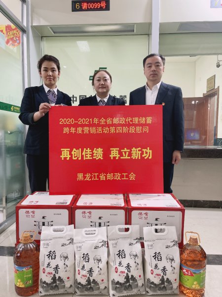 3月26日,雞西市分公司工會副主席袁寶和、雞東縣分公司工會主席葉天宇、虎林市分公司工會主席楊志峰分別帶隊,代表省郵政工會進行了慰問,為網點送去了夏涼被、大米、豆油等慰問品,對獲得榮譽的網點表示祝賀,并對網點全體職工在跨年度營銷活動中的辛苦付出表示感謝,同時鼓勵大家繼續保持良好的發展態勢,再創佳績,再立新功!