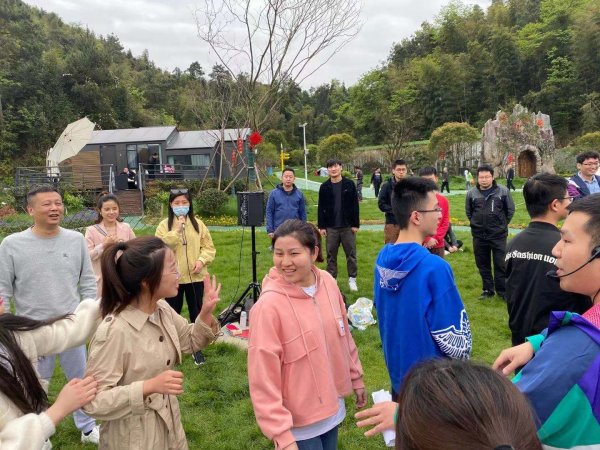 當天上午10時,大家抵達目的地后——山清水秀的灣里梅嶺鎮(zhèn)縵山居隱花堂民宿景區(qū),通過團體小游戲“破冰行動”和“桃花朵朵開”讓大家進一步相互熟悉,拉進彼此之間的距離。隨后的小組對抗游戲活動--“驛站傳書”和“荊棘取水”,進一步增加了現(xiàn)場活動氛圍。當天下午,活動安排了燒烤音樂會,大家紛紛展現(xiàn)自己的才藝,有唱歌、跳舞等節(jié)目,同時品嘗了美味的燒烤。
