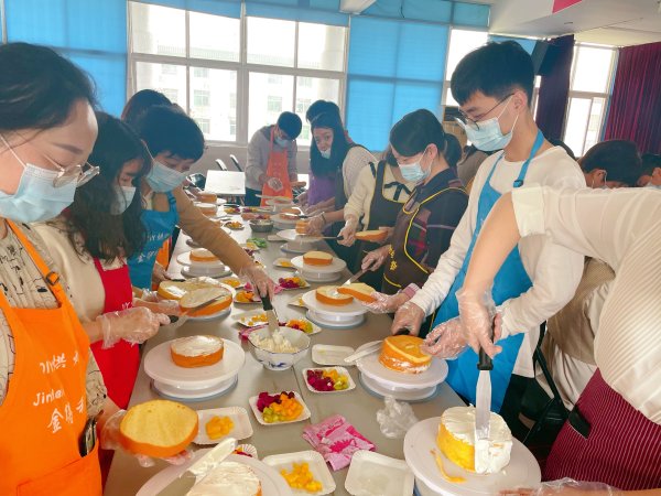 活動邀請了蛋糕師給大家現場講解蛋糕制作過程,進行食材準備、制作和講解。他們從選料、工具、技法和造型等方面給大家一一進行示范,指導大家如何從蛋糕餅開始,通過添加奶油、修整和加工,再添上水果和巧克力,最后制作完成品相極佳的蛋糕。大家仔細傾聽,認真揣摩,熟悉材料、操作工具。各位職工一展身手,在蛋糕師的指導下,發揮著各自的想象力,悉心學習每一個制作步驟,既互相協助共同“作戰”,又有獨特創意另辟蹊徑的美味。整個活動中,洋溢著濃郁的蛋糕香味和陣陣的歡聲笑語。