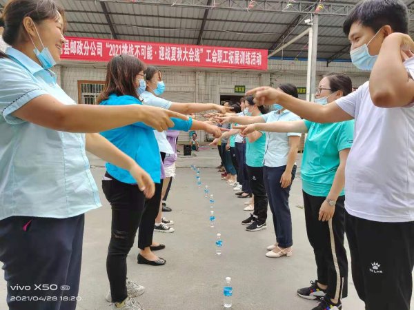 為豐富職工的文化生活,培養積極參與的熱情和團隊協作意識,梁河郵政工會于4月28日下午在郵政大院舉行了一場別開生面的拓展訓練活動,30多人參加活動。