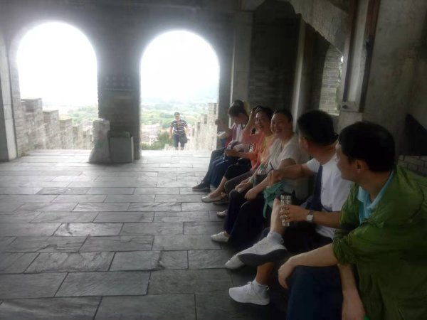 進(jìn)入景區(qū)后,映入眼簾的怪石嶺小長(zhǎng)城,雄偉壯麗宛若一條長(zhǎng)龍,此景頓時(shí)讓人豪氣頓生:“不登長(zhǎng)城非好漢!”。職工們?nèi)宄扇涸谂实?,汗流浹背卻不停步,這是一個(gè)痛并快樂(lè)的過(guò)程。頂著高照的艷陽(yáng),走在崇山峻嶺之上,身旁是青翠欲滴的樹木,瀏覽著散落在山中的怪石,不知名的野花點(diǎn)綴其間,讓人心情放松。登到最高的“白云亭”上遠(yuǎn)眺:溪霞水庫(kù)宛如一塊溫柔的翠玉無(wú)言靜臥在梅嶺山脈之中,而小長(zhǎng)城橫跨延綿群山之巔,傲然于蒼天之下碧空之中,遠(yuǎn)遠(yuǎn)看去,宛如猶如一條蜿蜒絲帶纏繞在青山綠水間,撲面而來(lái)的涼風(fēng)讓人悠然而嘆,工作的疲憊在此時(shí)隨風(fēng)飄散,頓時(shí)滿心舒暢。