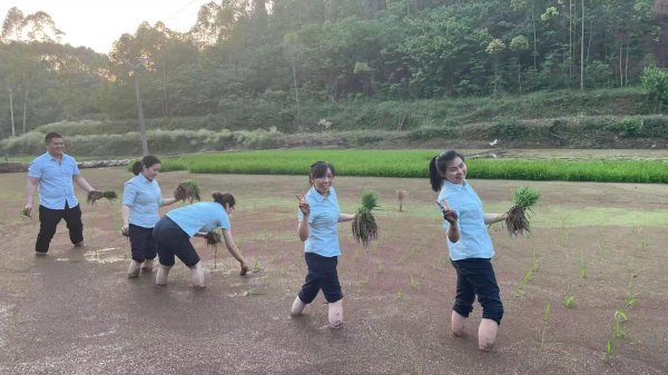 活動現(xiàn)場,大家踩著泥濘,挽起衣袖、擼上褲腿、光腳邁進田里,你把秧來我填土,幫助貧困戶插秧助生產(chǎn)。一邊踐行郵政企業(yè)“人民郵政為人民”的服務(wù)宗旨,手把青秧插滿田,幫扶貧困戶助力生產(chǎn),一邊發(fā)揚榮郵三牛精神,黨員帶團員,大家在一起感受勞動的快樂,感悟勞動創(chuàng)造幸福生活,體會快樂工作,幸福生活!