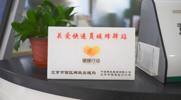 西城區(qū)郵政分公司在轄區(qū)內(nèi)精心選擇了地安門郵政支局、西長安街郵政支局、菜市口大街郵政所等10家郵政網(wǎng)點參加第一批試點揭牌活動。在復(fù)外大街郵政所,可以看到網(wǎng)點門前懸掛著帶有“關(guān)愛快遞員暖蜂驛站”字樣的標志銘牌。“暖蜂驛站”主要設(shè)置在自有金融網(wǎng)點VIP休息區(qū)或理財休息區(qū),現(xiàn)場擺放“暖蜂驛站”桌牌,為全行業(yè)快遞人員提供休息區(qū)、免費飲用水、手機充電、微波爐加熱等服務(wù)。