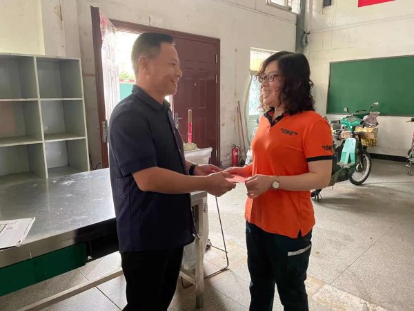 5月12日,南昌市分公司黨委委員、副總經理,寄遞事業部常務副總經理黃學文,攜寄遞事業部綜合部經理鐘麗莎,來到西湖區分公司象山營業部,走訪慰問了奮戰在投遞一線的南昌市勞動模范鄧必紅,為她送上了慰問金,詳細了解她以及其他一線員工的工作情況和生活狀況,感謝她作為一名郵政普通工作人員,多年如一日,盡職盡責,為南昌郵政事業做出了自己卓越的貢獻。