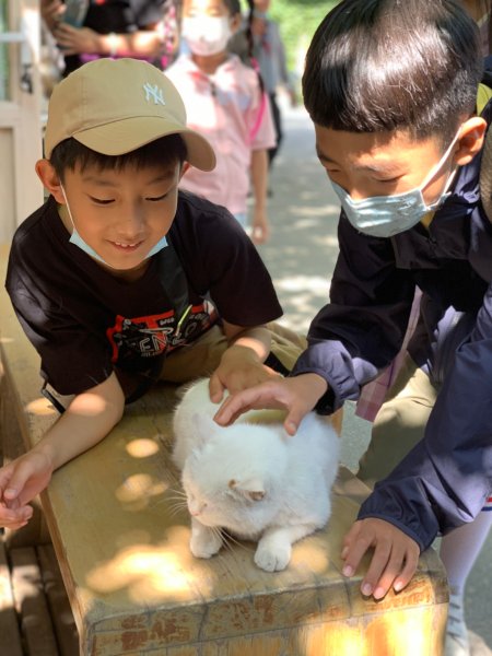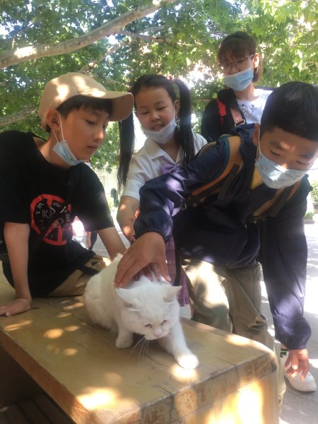 孩子們第一次這么近距離地接觸這么多文物,從元代到清代再到近代,從瓷器到家具再到油畫,從清花到粉彩再到琺瑯,孩子們聽得聚精會神,還不時與講解老師進行互動,并得到了精美的紀念幣小禮品。室內參觀結束后,孩子們又來到院子里與觀復貓一起玩耍、照相。