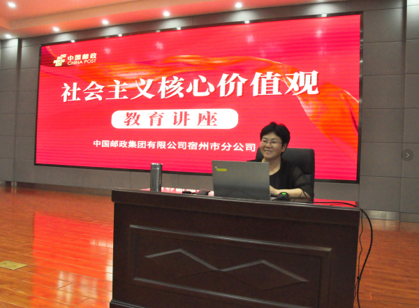為進一步弘揚社會主義核心價值觀,提升員工隊伍素質,推動職工把優秀的道德情操體現在日常工作與生活中,樹立良好企業形象,6月18日下午,宿州市郵政工會邀請市委黨校老師,組織開展了社會主義核心價值觀教育講座,來自市分公司干部職工代表共80余人聆聽了本次講座。