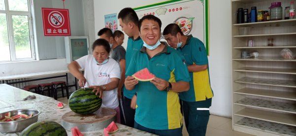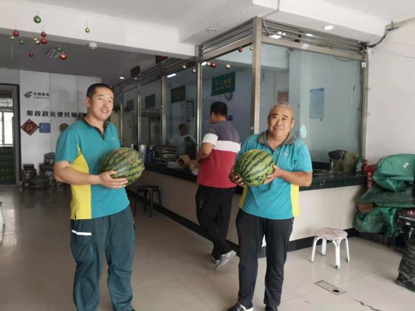 近日,七臺河市分公司第一季夏送清涼活動開始了。工會副主席宋巍帶領工會人員來到網路運營中心、茄子河攬投站、寄遞事業部攬投班慰問奮戰在高溫酷暑一線崗位上的員工,送去了個大、皮薄、汁甜的西瓜,為生產一線員工送去了一份關懷。